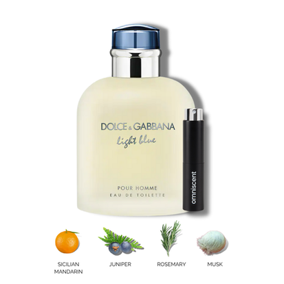 Experience the refreshing and invigorating aroma of Dolce & Gabbana Light Blue Pour Homme Eau de Toilette. This captivating fragrance captures the essence of a Mediterranean summer, with its vibrant and crisp blend of citrus and aromatic notes. The opening notes of zesty Sicilian mandarin and juicy grapefruit create a burst of freshness, while the heart notes of rosemary and Sichuan pepper add a touch of herbal allure. The base notes of oakmoss and musk provide a subtle warmth and sensuality, evoking images of the sun-drenched coastline. Light Blue Pour Homme is a fragrance that exudes a laid-back sophistication, perfect for the modern man who embraces a carefree and adventurous spirit. Let its invigorating and uplifting scent transport you to the idyllic shores of the Mediterranean, creating a lasting impression wherever you go.