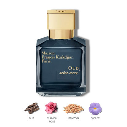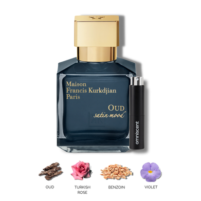Maison Francis Kurkdjian Oud Satin Mood Eau de Parfum is a luxurious and opulent fragrance that marries the rich and sensuous notes of oud with the velvety softness of satin. This captivating scent opens with a lavish blend of sweet and spicy notes, combining the depth of oud with the sweetness of Bulgarian rose and a hint of crisp violet. These initial accords create an alluring and passionate introduction.